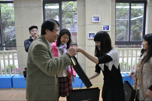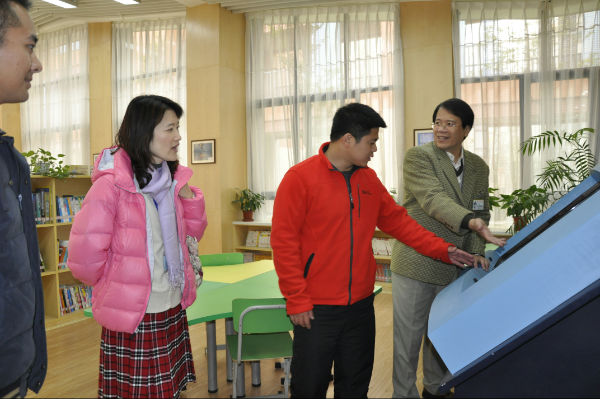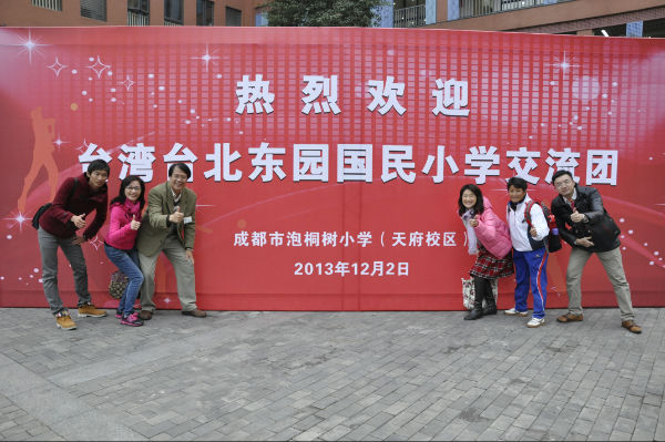 我校后勤服务部李贵远主任、学生工作部曹娟主任、校园文化部李世涛助理、付维娜助理陪同客人参观了我校校园文化,观看了学校极具特色的桐下读吧、泡家农场、泡家厨房、生活体验馆及各功能教室。台北市东园国民小学梁俊尧校长一行对我校优美的校园环境,极具内涵的文化建设,多元化的课程开设给予了高度评价。
