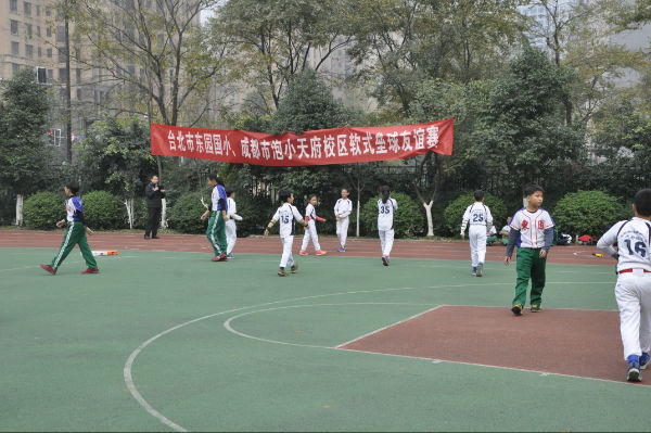 此后,两校软式垒球队队员还一同走进了学校操场,进行了一场为时一个小时的软式垒球友谊赛。通过此次比赛,进一步促进了两校的友谊。赛后,两校互赠礼物、合影留念。台湾台北市东园国民小学梁俊尧校长充分肯定了我校小泡泡的垒球技艺,并期待两校进一步的交流与合作,期盼下一次的相见!