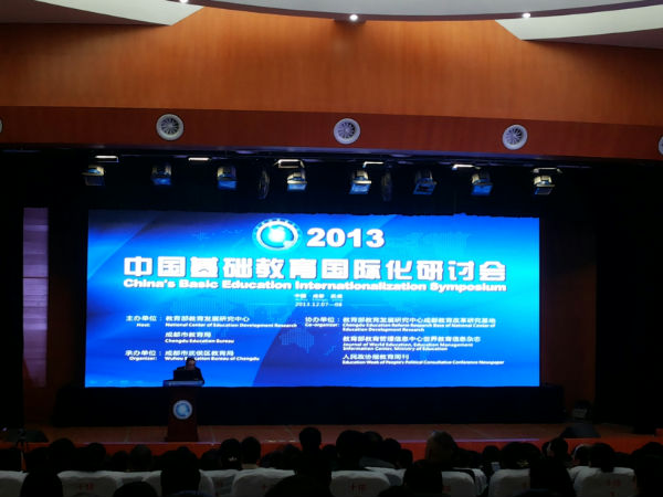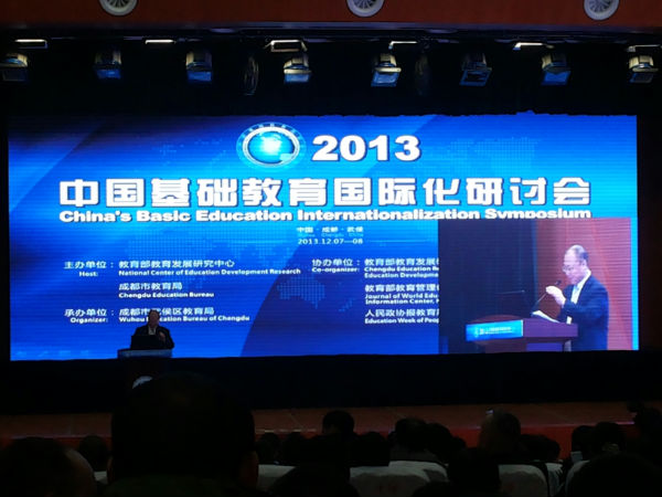 为了进一步拓宽全市教育国际化视野,搭建教育国际化的交流平台,由教育部教育发展研究中心、成都市教育局主办,教育部教育发展研究中心成都教育改革研究基地、世界教育信息杂志、人民政协报教育周刊协办,成都市武侯区教育局承办的“2013中国基础教育国际化研讨会”于2013年12月7日、8日在成都川大附中隆重举行。