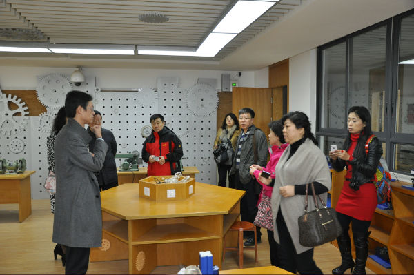 首先,芶鹏校长陪同代表团全体成员介绍了我校办学理念及核心价值观,并将互动性的校园文化建设的思路向来访嘉宾做了阐述,芶鹏校长陪同各位嘉宾参观了我校校园文化建设和班级文化建设的成果,来访嘉宾高度赞扬了我校的文化建设成果,从文化建设对学生的文化熏陶教育和审美的角度上给出了高度的评价;代表团成员饶有兴致的参观了天府艺术中心,对正在布展的高新区美术教师作品展进行了积极的评价,来访嘉宾一致认为,教师的美术作品在学生的身边展出,这是对学生提高美术兴趣非常有效的方式,对美术馆而言,其教育意义、审美的培养具有非不可忽视的作用。来访嘉宾还参观了我校的沙池、生活体验中心、攀岩墙、泡家农场以及各学科功能教室,对我校的课程建设和互动的环境设置理念给出了极大的肯定,尤其是特色课程的开设得到访嘉宾称赞!