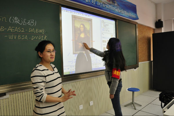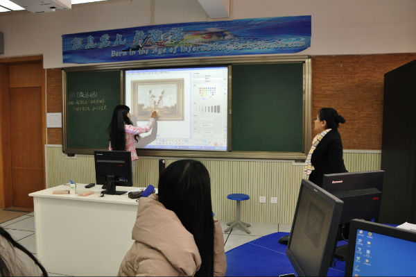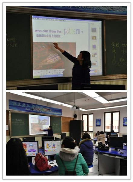 在现代教育教学变革的背景下,为促进区内青年教师的专业化成长,提升课堂教学能力与创新,依托现代信息技术,借助电子白板强大交互式功能,达到助力美术课堂教学质量提升的目的。2013年12月12日,以“展示走向互动、被动走向主动”交互式电子白板助力美术课堂教学创新为主题的美术实训基地活动在我校召开。