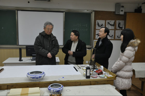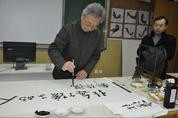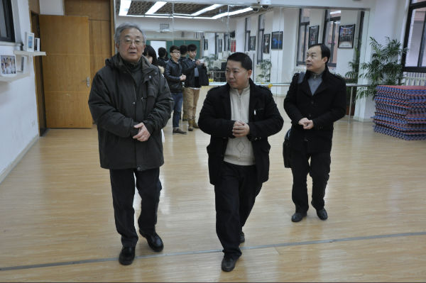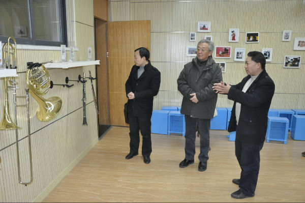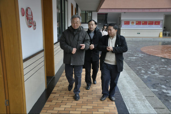 2013年12月20日,教育部体育卫生与艺术教育司谷公胜秘书长一行4人莅临我校考察指导。我校芶鹏校长、陈冠夫校长助理、校园文化部李世涛、付维娜老师代表全校师生热烈欢迎客人的到来,并陪同谷秘书长一行四人实地参观了学校的校园文化,走进了学校极具特色的天府艺术中心、音乐教室、舞蹈教室、书法教室、陶艺教室、版画教室等功能教室。陈冠夫校长助理在陪同考察过程中向谷秘书长一行介绍了学校的办学理念、办学愿景、校园文化建设以及学校艺术课程活动的开展。当走入书法教室时,谷秘书长更是被书法教室浓厚的文化氛围所感染,挥笔写下了对泡小天府、对全体师生的祝福,以此勉励晚辈再接再厉,继续携手“为每一个孩子最大可能的发展负责”。