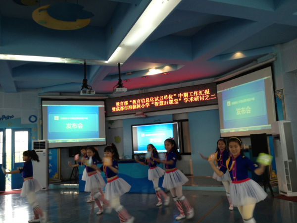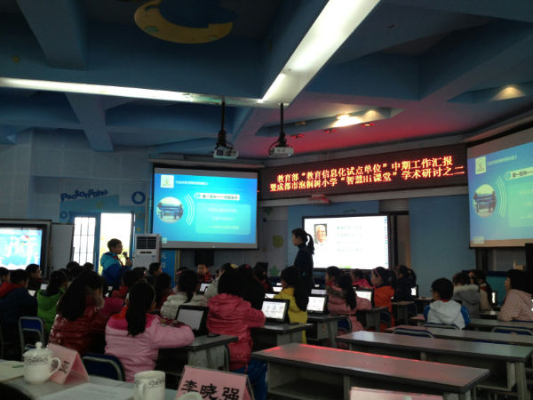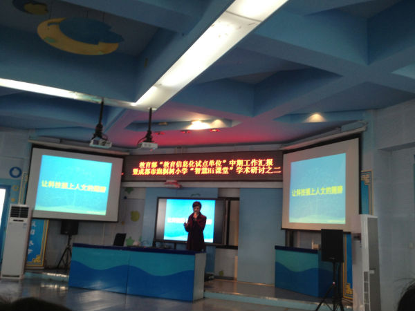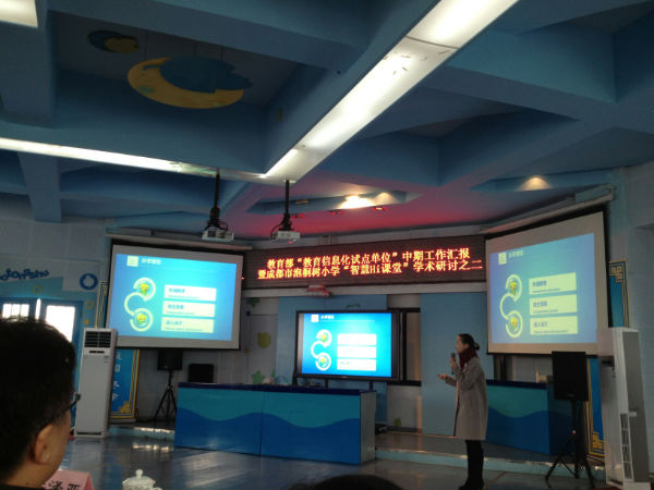 2013年12月26日,我校教学管理部主任游琼英老师、副主任陈洪娟老师、副主任欧小丽老师和数学组朱宁老师参加了在成都市泡桐树小学(本部)举行的教育部“教育信息化试点单位”中期工作汇报暨成都市泡桐树小学“智慧Hi课堂”学术研讨活动。此次活动,有中央教科院和四川省电化教育馆等单位的领导出席,同时也邀请了家长志愿者参与。