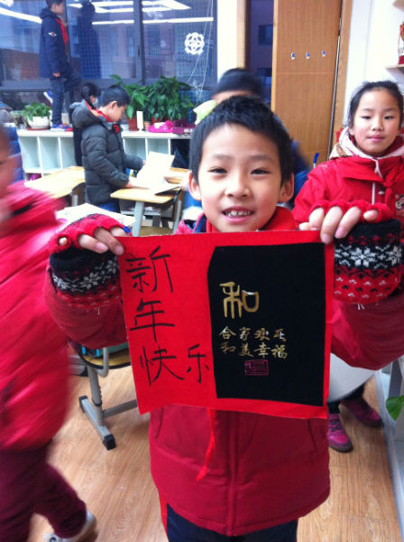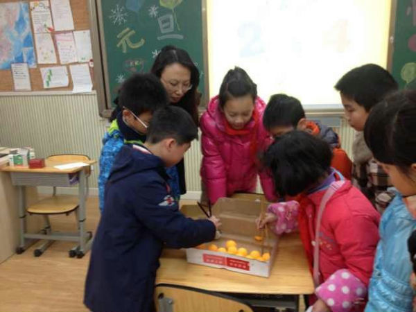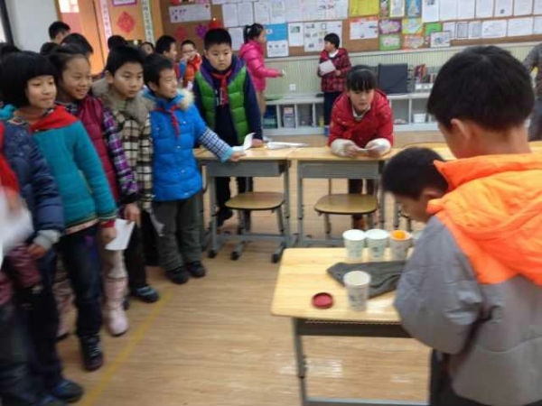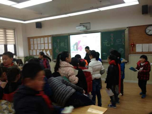 “新年好呀,新年好呀,祝福大家新年好!”今天是2013年12月31日,在2013年即将要结束的日子里,为了让师生感受辞旧迎新的意义,活跃校园文化生活,泡桐树小学(天府校区)四年级特别打造了“元旦游园会,精彩乐翻天”的新年庆祝活动。 游园会由四年级组老师提前策划,精心组织。一大早,孩子们就将自己亲手制作的新年饰品贴挂出来,教室里充满了浓浓的节日氛围。9点整,热闹的游园会开始了,游园会游戏项目形式多样,内容新颖,深得同学们的喜爱。活动现场是非常热闹。有考验灵敏度的“抢凳子”,有考验耐性的活动“吹乒乓球”和“掌上明珠”,还有考验方向感的活动“摸鼻子”等。游戏充分融入了互动和竞赛元素,台上选手绞尽脑汁,台下同学积极献策,其乐融融。每个游戏现场都挤满了了人,荡漾着同学们的加油声,欢笑声……