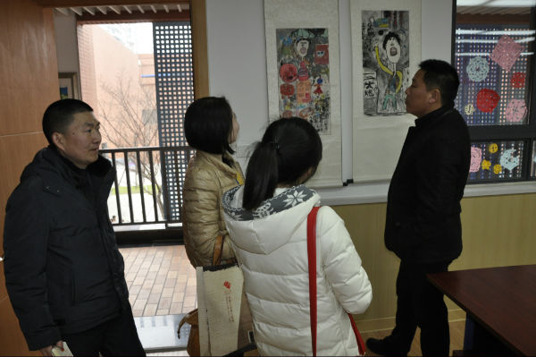 首先,李世涛老师陪同代表团全体成员介绍了我校办学理念及核心价值观,并将互动性的校园文化建设的思路向来访嘉宾做了阐述,李老师陪同各位嘉宾参观了我校校园文化建设和班级文化建设的成果,来访嘉宾高度赞扬了我校的文化建设成果,从文化建设对学生的文化熏陶教育和审美的角度上给出了高度的评价;代表团成员饶有兴致的参观了天府艺术中心,欣赏了正在展出的“2013‘布拖行’高新区美术教师作品展“,来访嘉宾一致认为,教师的美术作品在学生的身边展出,这是对学生提高美术兴趣非常有效的方式,学生零距离接触优秀美术作品,体会美术学习的乐趣,增加对美术学习的动力。开放式的美术馆,高水平的美术展出,其对孩子的教育意义、审美的培养具有不可忽视的作用。