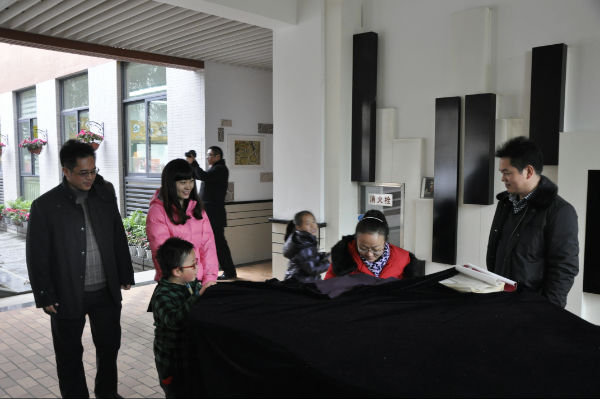首先,李世涛老师和付维娜老师陪同代表团全体成员介绍了我校办学理念及核心价值观,并将互动性的校园文化建设的思路向来访嘉宾做了阐述,李世涛老师和付维娜老师陪同各位嘉宾参观了我校校园文化建设和班级文化建设的成果,来访嘉宾高度赞扬了我校的文化建设成果,从文化建设对学生的文化熏陶教育和审美的角度上给出了高度的评价;代表团成员饶有兴致的参观了天府艺术中心,欣赏了正在展出的“2013‘布拖行’高新区美术教师作品展“,来访嘉宾一致认为,教师的美术作品在学生的身边展出,这是对学生提高美术兴趣非常有效的方式,学生零距离接触优秀美术作品,体会美术学习的乐趣,增加对美术学习的动力。开放式的美术馆,高水平的美术展出,其对孩子的教育意义、审美的培养具有不可忽视的作用。