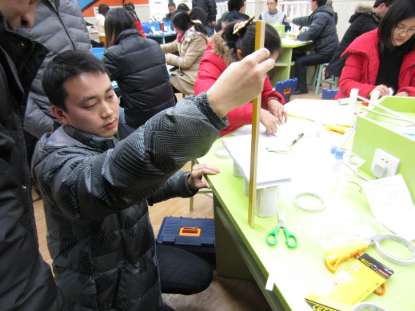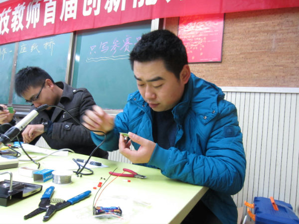 比赛分为两个时段:上午9:00--12:00小学组,下午2:00--5:00中学组。在有限的时间内所有参赛教师要完成发明创意设计、电子制作、纸桥创意制作三个内容,主要考察教师的创新能力、动手能力。本次比赛邀请了中科院成都分院王万林教授及市科协发明专家刘玮老师担任评委,区教研员周玉刚、黄仁松及陈洪娟老师担任助理评委,教育处林超老师也莅临现场观看比赛。