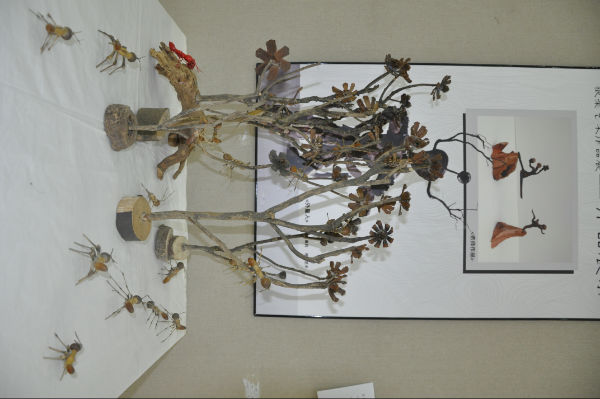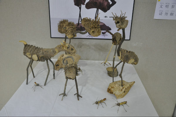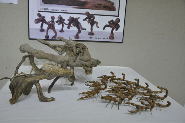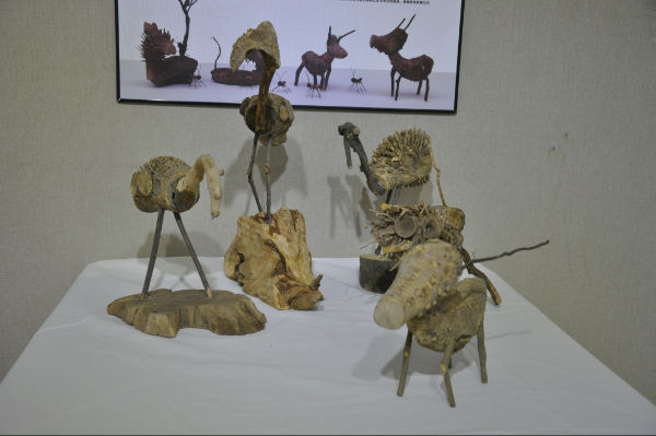 邛崃市高何小学与成都市泡桐树小学(天府校区)2013年互结为友好学校,是全国百所红军小学,成都市唯一一所红军小学,地处邛崃市高河镇山区,师生结合山区特有的材料就地取材,通过对竹根的认真研究和加工整理,创作出了质地朴实,形象生动的根艺作品。