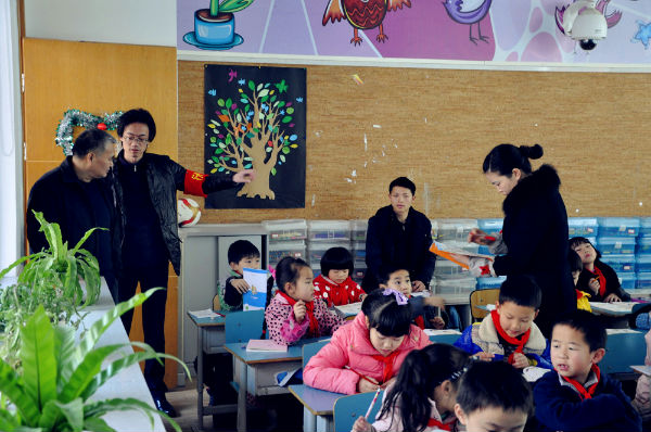 杨资政等领导实地检查了学校安保人员配备、执勤和安全防卫器械、监控、消防器材等设施设备。芶鹏校长向领导们详细汇报了学校近期安全管理工作:一是高度重视安全工作,3月2日及时召开行政会,传达市委、市教育局和高新区安全工作会议精神,3月3日向全体教职工进行了传达,统一了思想,提高了认识。二是加强了校门值日,从3月3日起,全体行政领导、值日老师和保安人员在芶鹏校长的带领下,坚持每天上学、放学到学校大门和侧门值守,当好学校的第一防线,确保校门师生进出校园安全。三是加强安保队伍建设,由男教师组成护卫队每天加强门岗保卫力量,并于3月3日下午邀请成都军区解放军教官,对学校安保队伍进行了防恐、处突等实战化安全技能应急训练。四是加强学生安全教育工作,各班对学生进行了预防人身伤害和交通、消防安全主题教育活动,提高安全保护意识,人人知晓“110、119、120、122”报警电话。五是加强警校联动工作,尤其是与交警六分局一大队进行深入沟通,商议继续派出警察每天早晨和放学时段到校门外指挥交通,确保师生交通安全;与石羊派出所商议每天派出治安联防队员在校门外巡逻,确保师生人身安全。六是加强安全排查整改工作,后勤服务部对学校食堂、教室、功能室、设施设备、活动场地等进行了全面排查整改。