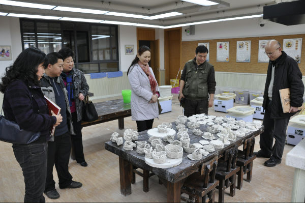 2014年3月12日,四川省美术教研员冯恩旭老师、四川美术出版社余其敏总编、黎伟副社长一行5人莅临我校参观交流。我校芶鹏校长、陈冠夫校长助理、校园文化部李世涛老师热情接待了各位来宾。