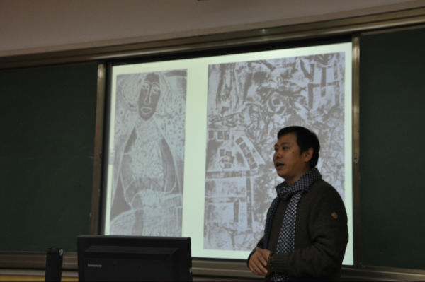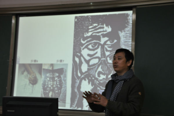 闫华老师为这次讲座做了充分的准备,结合了他多年的从教、观摩、学习的经验,为老师们打开时通往版画世界的大门。闫华老师结合经典画作分析、技法指导,理论结合实践经验,老师们情趣盎然。粉印版画、擦色版画、综合版画、套色版画,画画精彩,黑色、白色、灰色色色精到,直线、曲线、折线、线线传情。
