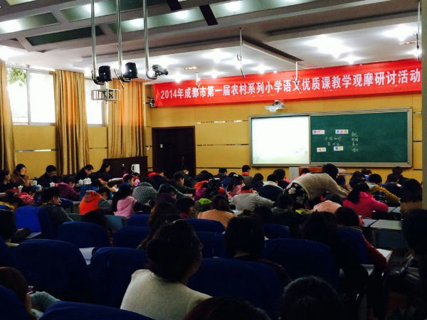 2014年3月13日,2014成都市第一届农村系列小学语文优质课教学观摩研讨活动(高新大邑邛崃片)在新光小学全面开展。我校语文组全体教师观摩了本次赛课活动,我校校长助理宋茜老师受邀担任本次大赛的评委。