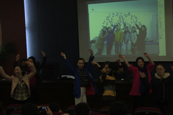 首先是万里燕老师作为音乐组组长对我们音乐组进行整体介绍,接下来我们每位成员分工对音乐老师与成长、音乐功能室、音乐教研及活动进行了介绍。每位老师在介绍的时候,都朴素而真挚地讲述,无不让在场的老师感动。最后我们组全体老师在《相亲相爱》的歌声中激情舞蹈,让这次教研组的展示升华到高潮,掌声不断,并受到领导和同仁高度评价:泡小天府音乐组是和谐、团结、上进的音乐组!