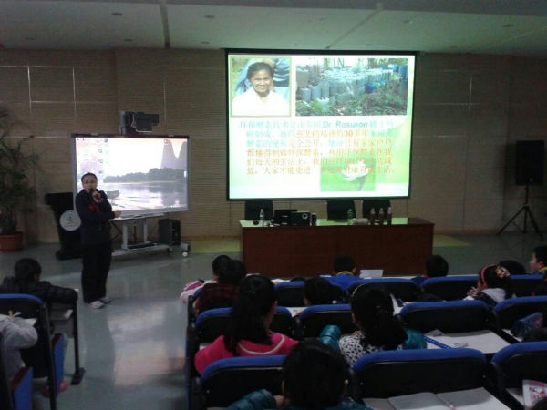 2014年3月13日中午12:50,成都市泡桐树小学天府校区三年级的孩子们齐聚多功能厅,倾听泡小天府家长学校的梅子老师进行环保酵素的专题讲座。