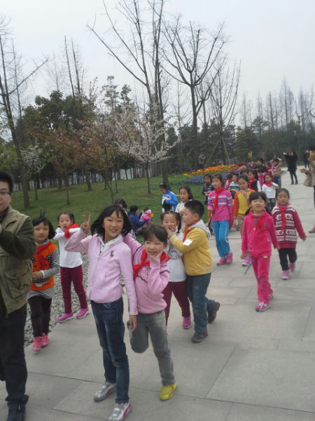 4月17日,阳光躲在薄云后,成都市泡桐树小学(天府校区)国学吟诵和手工两个社团的孩子,乘坐大巴车来到了金沙遗址博物馆,在社团余老师、国学老师、手工老师的带领下,开始了他们参观金沙博物馆的快乐行程。