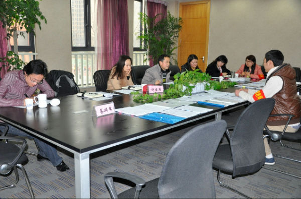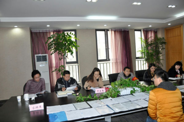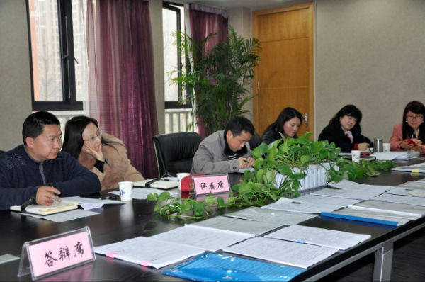 图为图为评审组专家正在听取第一个答辩者干波老师的发言