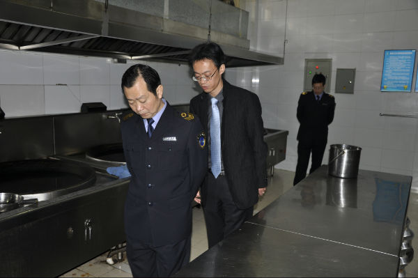 崔局长等领导实地查看了我校每日的餐单,并亲自来到食堂查看当日的菜品以及食堂的卫生和库房管理情况。芶鹏校长向领导们详细介绍了我校食堂的运作以及平时对食品卫生安全的管理情况。崔局长对我校食堂的卫生安全保障给与了肯定和鼓励。