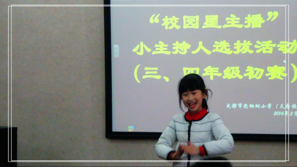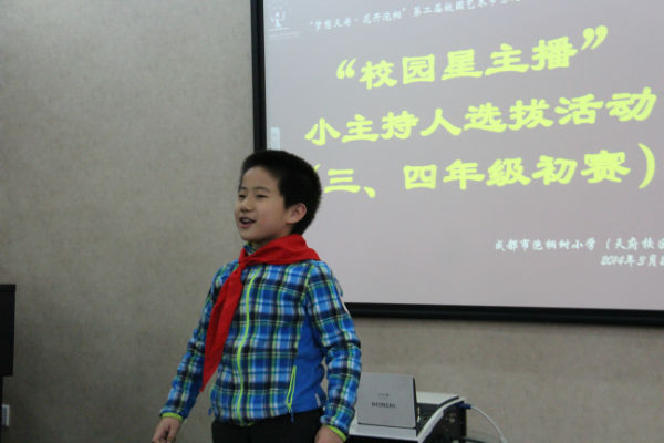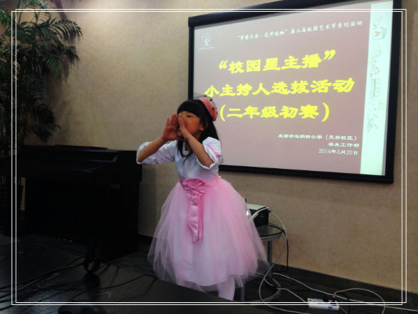 成都市泡桐树小校(天府校区)第二届校园艺术节系列活动——首届“校园小主播”小主持人选拔活动(1—4年级初赛)于3月21日中午顺利落幕。本次选拔活动完全遵照选手们的现场表现和评委们的现场评分,最终评选出一、二年级进入复赛和三四年级进入决赛的小朋友。现通知如下,请进入复赛和决赛的小朋友们做好准备: