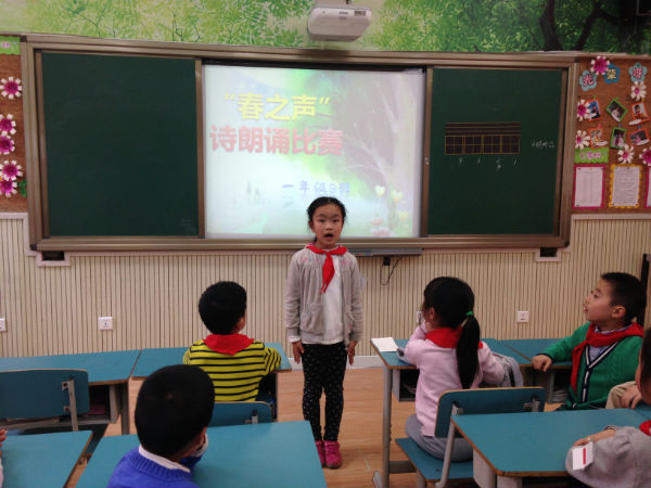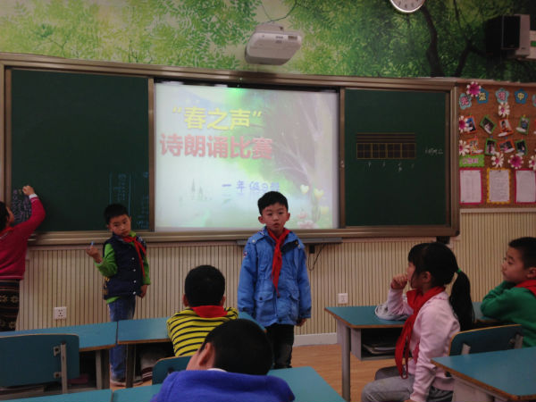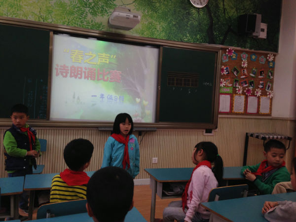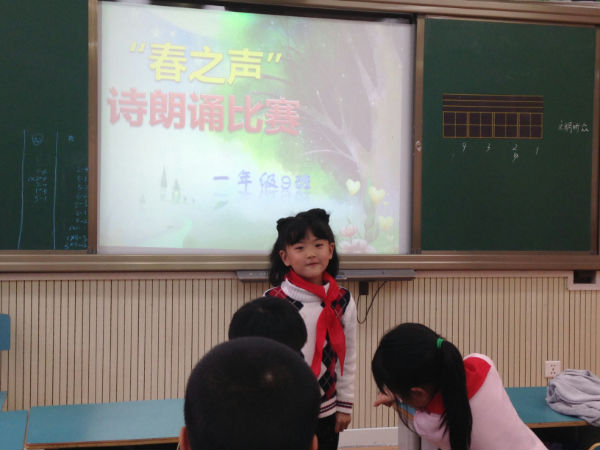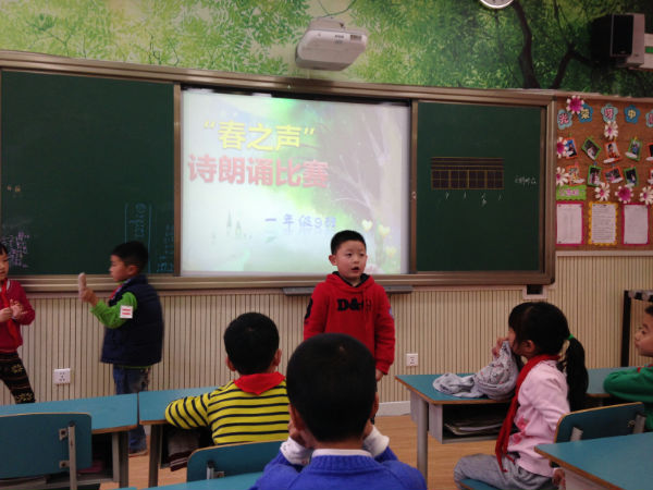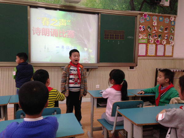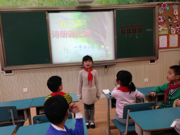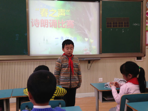 泡泡们经过一周的精心准备,一年级9班泡泡们于2014年3月19日在本班教室举行了“春之吟诵”诗歌朗诵比赛。