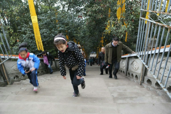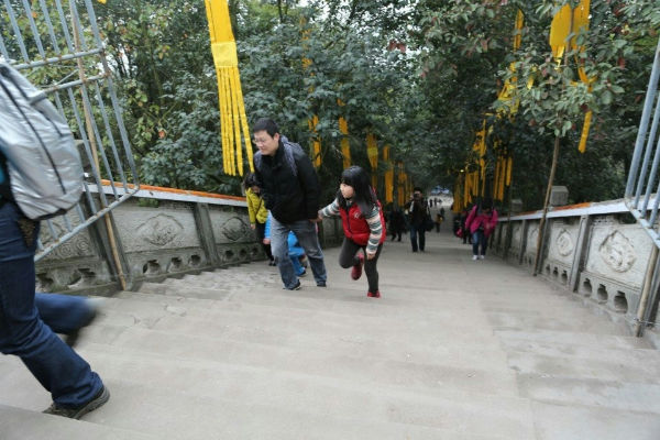 花开了,树绿了,太阳的脸红了,春天的脚步近了。2014年3月23日泡桐树小学天府校区3年级4班学生和家长在罗老师和家委会的组织下于早上8:30从学校出发到老君山开展登山比赛的活动。活动目的是让孩子们能更好地亲近大自然,走进大自然,感受大自然的魅力。在此活动中以家庭为单位进行了登山比赛,随着家委会主席宣布比赛开始,孩子们和爸爸妈妈快速地跑了起来。大约二十分钟左右,孩子们陆陆续续地登上了山顶。接着家委会委员根据孩子们登山的时间评出一、二、三等奖。孩子们拿着奖品,脸上笑开了花。