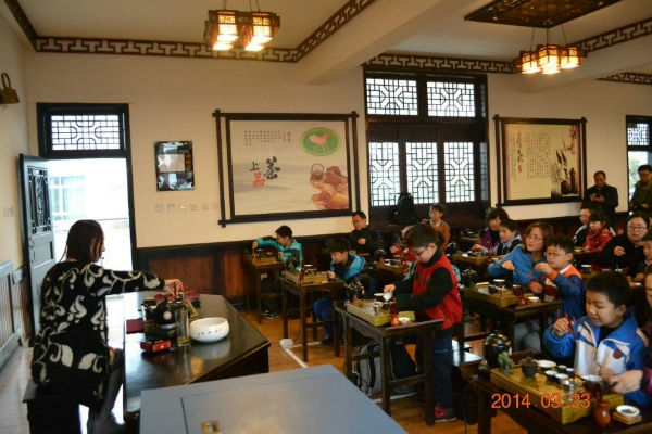 上午在导游的带领下,同学们按照校门—照壁(教育理念)—茶人广场(右边橱窗、左边校徽、茶人文化长廊)—茶礼室—实验园—社区教育培训厅—操场主体背景—学思苑—校门的顺序参观了教育基地茶人教育校园文化。