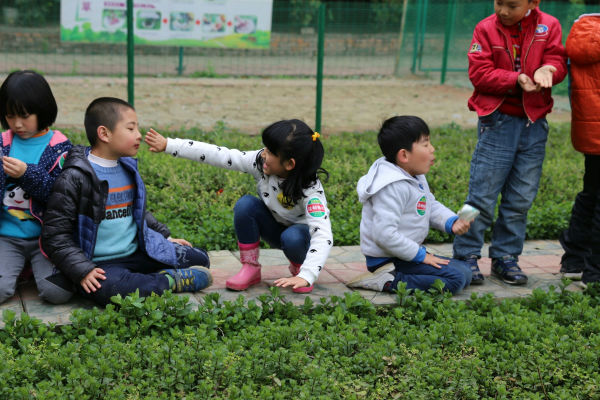 先来认识一下种子各种各样的萝卜种子、白菜种子、生菜种子、瓜果类种子……孩子们在示范点阿姨的带领下认识种子,同时可以猜猜种子的品种,答对的孩子可以获得奖券,最后可以用奖券兑换蓝葵的种子带回家哦。