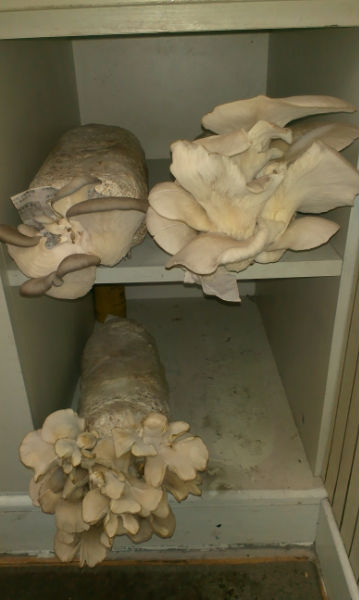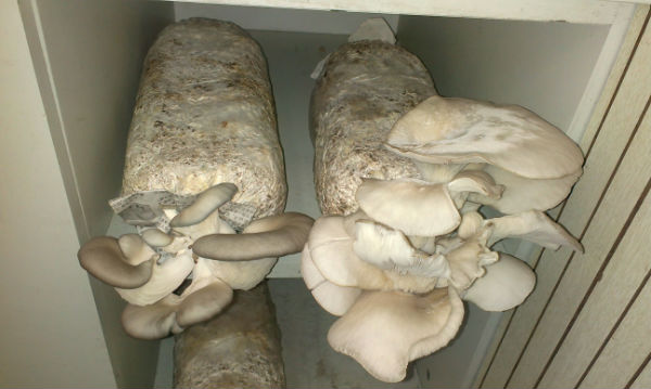 3、菌包每次收获了后应该清理残渣,抠掉一些,然后继续保持湿润环境。等待后面几轮出菇。最后不长了的菌包可以掰碎当做花肥。