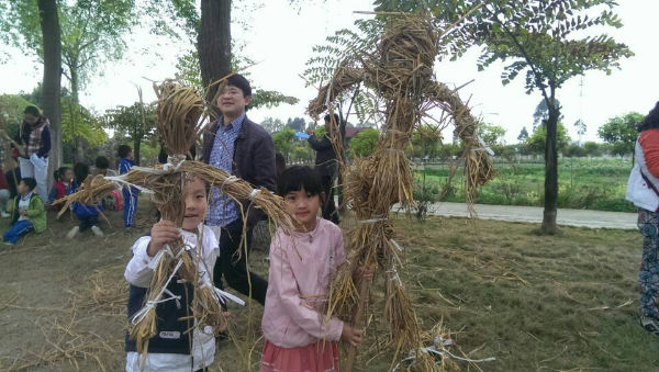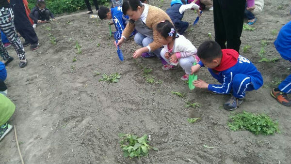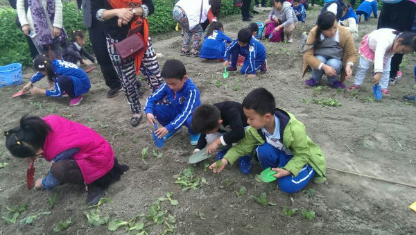 午餐后,小朋友们在农场工作人员的安排下下地种菜,扎稻草人,孩子们体验到了动手动脑带来的快乐,同时也感受到了劳动的辛苦。