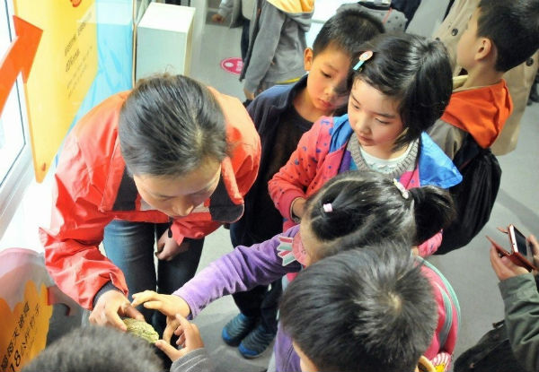 参观中,讲解老师们不时的提出问题,考验哪些小朋友听得认真,答得仔细。很多小朋友都得到了小小的奖励,最后每个小朋友都以很好的成绩得到了熊猫基地的一个特殊奖励,一个代表了保护生态环境,保护我们的国宝大熊猫的纪念章。这个纪念章可是很多研究,养育和保护熊猫的科技工作者们,经过了几十年的辛苦努力才得到的成果呢。孩子们骄傲的把纪念章别在自己的胸前,立志做保护环境,珍爱环境的环保小达人。