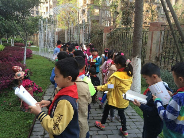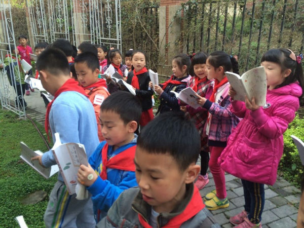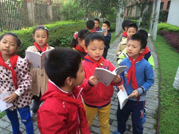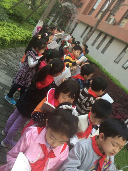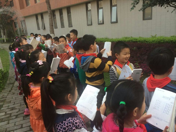早读铃声响了,老师来到教室简单地说了句:拿书,起立,推凳子,抱书,排队!3班的小泡泡一头雾水,个个心里都琢磨着:这是要去哪儿?要干什么?排好队,老师带着大家来到了后花园,室外晨读开始了。“人之初,性本善。性相近,习相远……”孩子们大声地朗诵经典国学《三字经》,悦耳的声音响彻书香校园,引得小鸟也来凑热闹,叽叽喳喳附和着。短短的十五分钟过去了,要离开后花园了,大家都意犹未尽,孩子们留念的不仅是后花园的美丽春色,还有这种新的学习方式带来的乐趣。以后,3班的孩子会多走出课堂,亲近自然,快乐阅读。