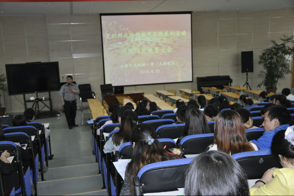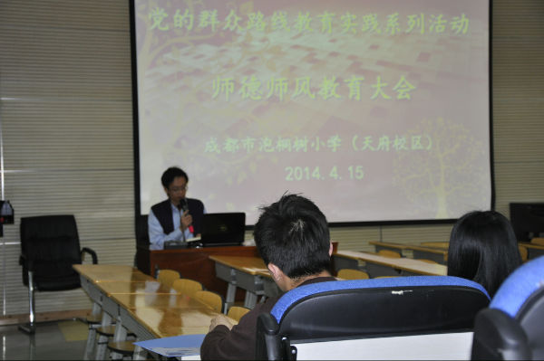 我校全体教师于2014年4月15日下午在学校多功能厅召开了“党的群众路线教育实践系列活动——师德师风教育大会”。