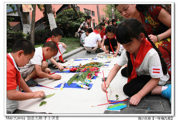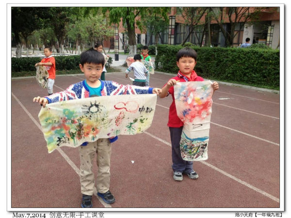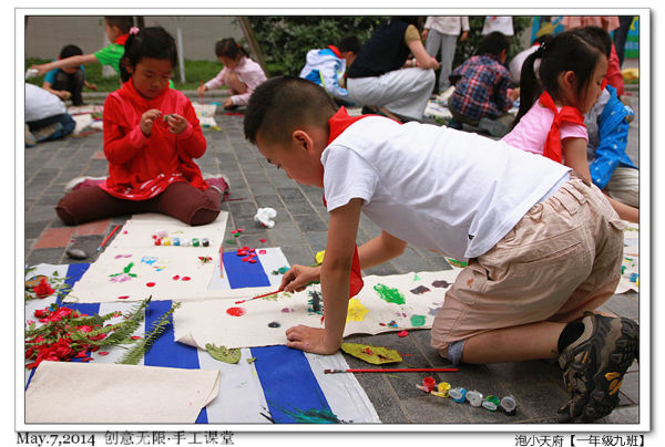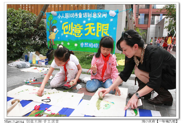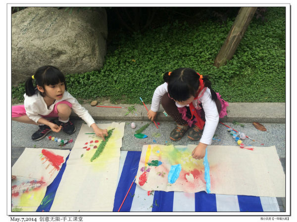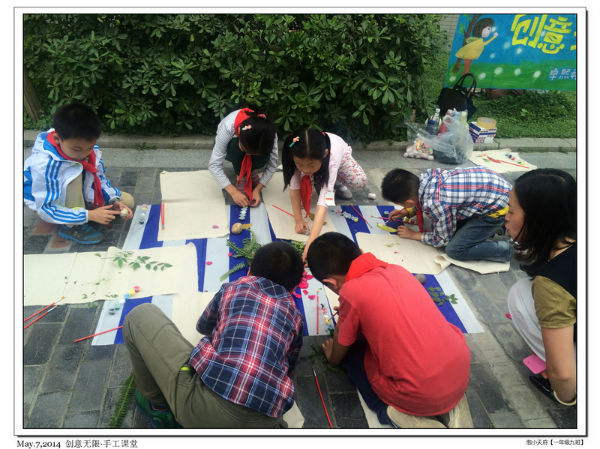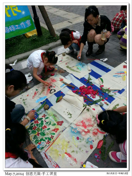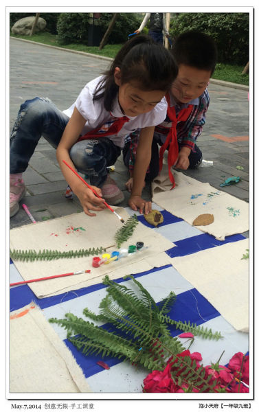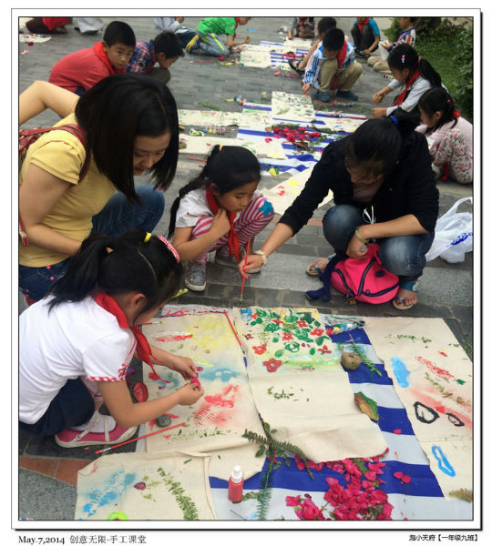 习惯了用水彩笔、蜡笔、毛笔、颜料在纸上画画,小泡泡们对用植物在布上画画感觉特别新奇。一堂乐趣无穷的创意手工课堂——植物拓印,让一年级九班的孩子们开了眼界。