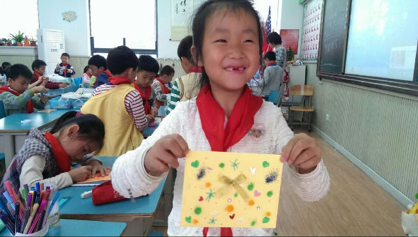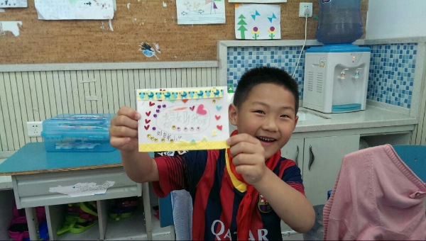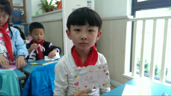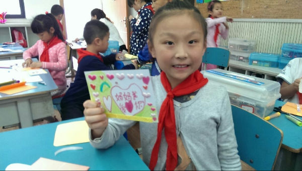 今天泡小天府一年级四班的同学们要把对妈妈的爱说出来,做出来!下午的特色班会课上,泡妈们又带来了新东西——教小泡泡们亲手做一张母亲节的卡片送给妈妈!前一天晚上,小泡泡们就开始仔细准备今天要用的卡纸,剪刀,胶水等工具,都期待着今天能给妈妈做出一张全世界最漂亮的卡片。班会上,小泡泡们跟着泡妈铺开卡纸,仔细地折出满意的大小,小心地剪出新颖的款式,认真地画出好看的图案,当然,还少不了写上祝福和爱。