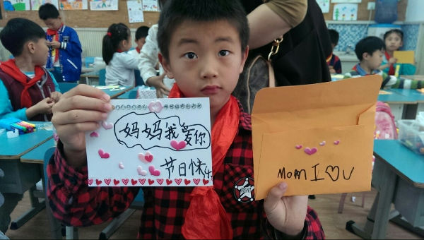 爱要说出来,不论孩子第几次告诉妈妈我爱你,妈妈还是会有幸福的微笑在嘴角扬起,爱要做出来,不论孩子第几次送上亲手做的卡片,妈妈还是会反复地看舍不得放下。一年级四班的小泡泡们用自己的行动,给妈妈送上了甜蜜的幸福,送上最纯真的爱!
