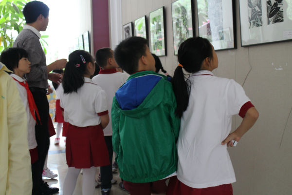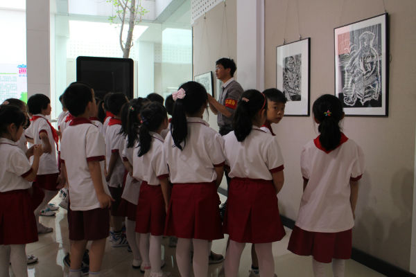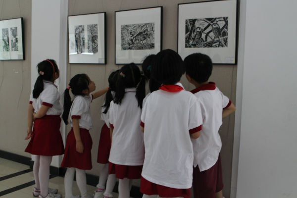 由我校承办的青少年宫的版画、色彩作品展,作品精致、创作内容多样、人物造型生动夸张,其中版画作品中娴熟的刀法的运用以及“以刀为笔”刻出来的线条的韵味确实让我校的学生眼前一亮,感受到了版画这种传统艺术方式带给人的视觉冲击,让我们的孩子在版画的黑与白之间找到了视觉平衡。在学生的参观、学习中有了更多的认识和想法,从不同的方面,对美术有了更加丰富的理解。