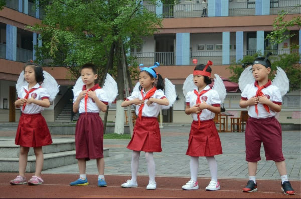 每个孩子都是一个来自天上的天使,乘着翅膀来到了我们中间,因为要和爸爸妈妈相遇相爱,他们藏起了自己的翅膀。但是,有慧眼的人们都能够发现,每个孩子都有一副属于自己的翅膀。以“隐形的翅膀”为题,在五月十九号周一的清晨,我们一年级七班的孩子们在神圣的国旗下,给大家献上了精彩的国旗下活动——给心灵插上隐形的翅膀。