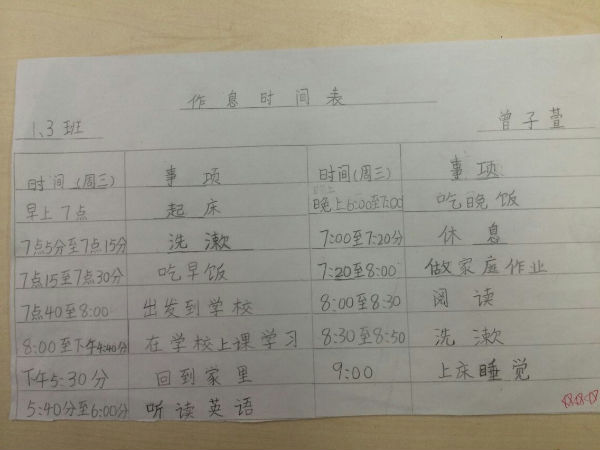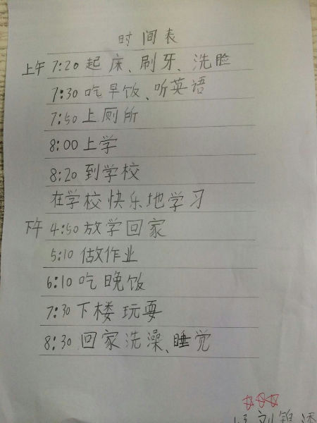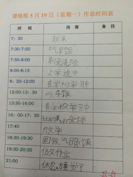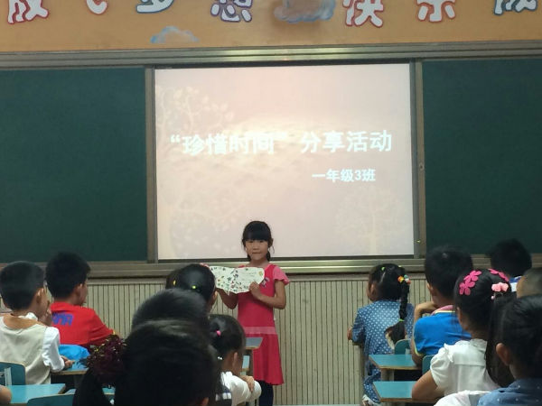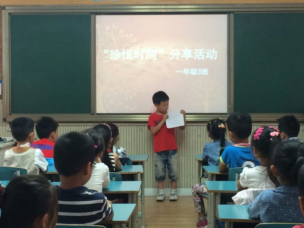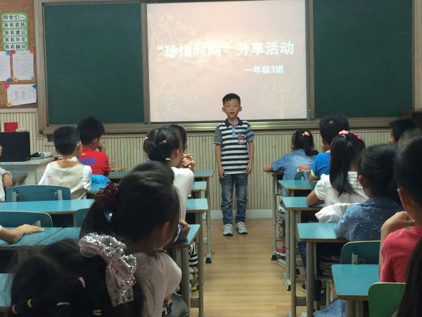 一年级的小朋友不会抓紧时间、珍惜时间,常常上学迟到、做事缓慢、作业拖拉等,为了让大家懂得时间的宝贵,知道如何珍惜时间,如何充分利用时间,做时间的主人,一年级3班开展了“珍惜时间”主题少先队活动。活动以讨论“一分钟,你能做什么”开始,小朋友们展开了激烈的讨论,每个人都起来向大家汇报。大家积极回答,有的说一分钟能练五个字,有的说一分钟能帮妈妈倒一杯水,还有的说一分钟能跳绳120个……小朋友分别从学习、生活、锻炼等方面阐述了一分钟能做很多事情;紧接着,大家开始分享周末制作的“作息时间表”,从早上起床到晚上睡觉,小朋友们都安排地井井有条,大家都建议回家后把作息时间表贴在自己的房间里,每天提醒自己;最后,小朋友们朗诵关于时间的名言警句、古诗以及儿歌。