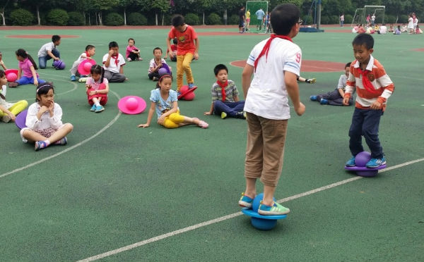 5月22日下午,体育组开展了教研,我校青年教师沈琳为大家献上了一堂水平二的“健身跳跳球”课。 健身跳跳球是针对成长中的儿童及青少年设计的一种最新型、集娱乐、健身为一体的运动器材。它是运用腹部肌肉和下肢力量通过球的反弹力进行的上下纵向运动。