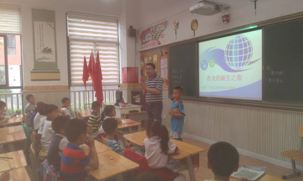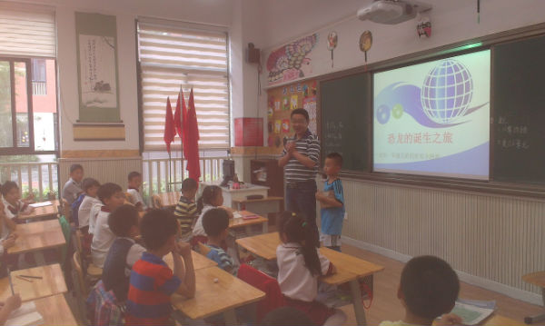5月23日下午,梅逸天同学的爸爸给同学们上了精彩的一课——恐龙的诞生之旅。逸天爸爸查阅了许多关于恐龙的知识,精心备课,制作了一个生动形象的动画,在声音和画面上给学生以美的感受,使学生仿佛进入了恐龙世界。
