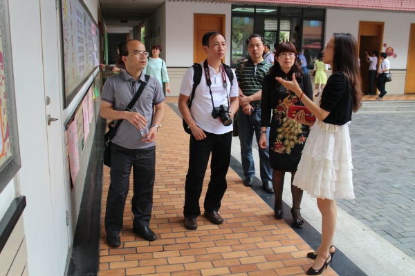 2014年5月23日,广州市卓越小学校长培训班一行30人莅临我校参观交流。我校宋茜副校长、校园文化部李世涛、付维娜老师热情接待了来访嘉宾,并陪同参观了我校极具特色的国学大道、常规教室、天府艺术中心、泡家厨房及各功能教室。参观过程中,客人们不仅感受了学校优美的校园环境、浓厚的文化氛围,更是对呈现在每一面墙上的小泡泡作品赞叹不已。