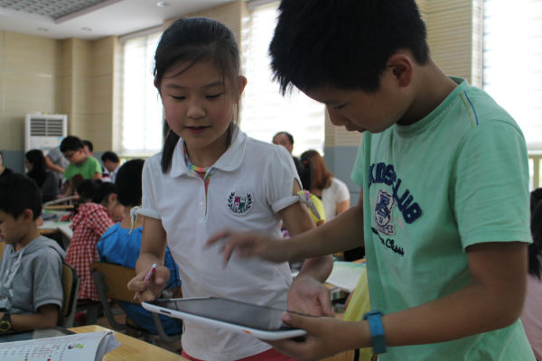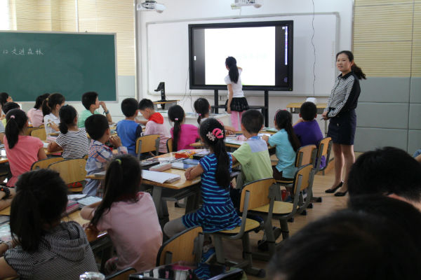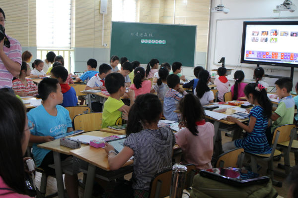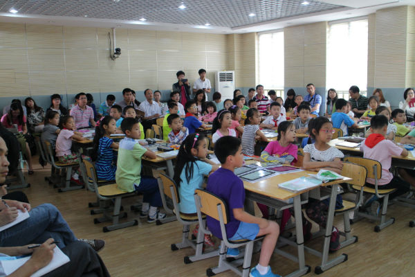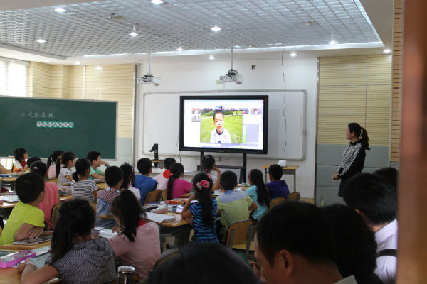 随后,客人们还走入了我校基于信息环境下的语文数字课堂。在学校语文教研组长宁超群老师的引领下,3.3班的孩子们在数字化一对一环境下,通过合作、分享的方式,学习了北师大教材三年级(下)《失踪的森林王国》一课,充分展示了我校泡泡优质的综合素养。