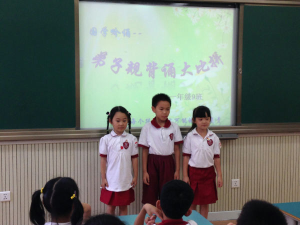 期末考试在即,为了激发小泡泡自主学习与主动学习的积极性,6月18日,一年级9班举办了国学吟诵——《弟子规》背诵大比拼比赛,全体泡泡们经过3个多月的准备,精神饱满地投入到本次比赛之中,展现出良好的精神风貌与惊人的记忆能力。