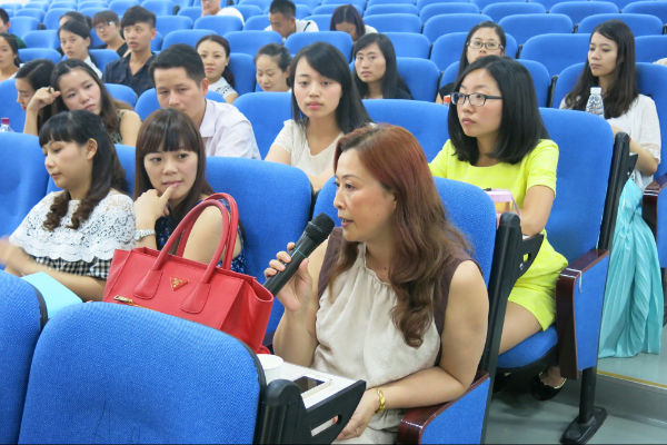 然后由副校长宋茜抛出第四个互动话题——为什么会出这个题目?语文老师许玲玲说是让我们了解学校,更快地适应环境,大家相互交流更快地融入团队……宋校长又抛出第五个较为尖锐的互动话题——你认为你存在的最大障碍是什么?语文老师徐小棠说她自己是井底之蛙,关于一些新的概念比如慕课和数字化一对一还很陌生,需要加强学习;语文老师赖冬妮说对我校的分享教学充满期待;音乐老师李丽说一个人仅仅有专业素养是不够的,还需要在课堂上去打磨,要永远怀着一颗年轻的心才能有所发展,并通过一次盆栽的经历说明教师发展的“不动声色、厚积薄发”;数学老师任盼盼谈到了关于信息化教学的认识……