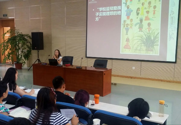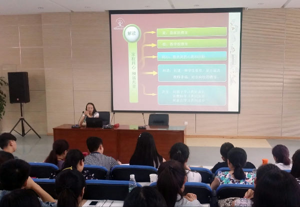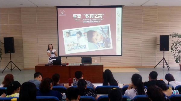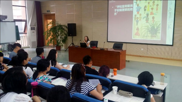 随后,宋茜副校长带着新教师们走进了泡小天府的世界:享受教育之美——课程优化的探索与实践。在回顾了泡小天府从无到有、从小到大一步一步发展起来的风雨历程后,宋茜副校长详细地介绍了泡小天府的定位、融合、实践、核心价值观、办学愿景、思路和文化构建等等。接着大家在互动中,了解了“10分钟”的故事,这是基于信息通讯技术的能力提升。紧接着宋茜副校长带领老师们一起分享了关于泡小天府家校共育的特色。最后以“学校是帮助孩子实现理想的地方”进行总结,并对新进老师们表示了最热烈的欢迎,欢迎他们加入到泡小天府这个充满温馨和谐的大家庭,并真诚的期待每一位优秀新老师都能为这棵美丽的大树增添新的活力和朝气,并一起彼此鼓励、努力,用爱,用发自内心的微笑让每一个孩子都感受到幸福,成为学生心中最可爱的人。