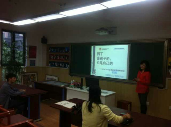 首先,姜老师抛出的第一个问题对于“园丁是自己的,也是孩子的”中展开,新老师们各抒己见,在姜老师的引导下,了解到了一个真正意义上的教师应该具备哪些元素以及教师如何最大可能的发展孩子。