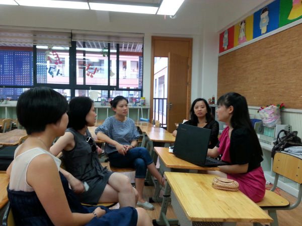 2014年8月28日下午,二年级3班银杏园的班主任傅兮老师与班级家委会的六位泡爸泡妈经历了第一个暑期后相聚,协力谋划二年级上期家校共育各项事宜。