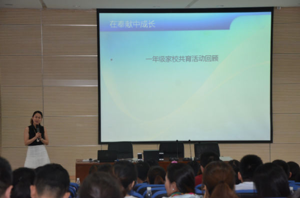随后,成都泡桐树小学(天府校区)校级家委会高中森主席向蒙小全体家长朋友们介绍了学校特色的“家校共育”活动,并就家委会的权利、家委会的义务、如何与老师沟通与交流、如何处理孩子间的矛盾、如何看待老师的角色、如何提出自己的意见和建议、如何形成班级好的氛围等话题与大家进行了分享。同时,作为泡小天府校级家委会副主席的雍梅妈妈、贾燕妮妈妈更是与在座的各位蒙小爸爸妈妈分享了自己从班级家委会到校级家委会工作中经历的那些感人故事。