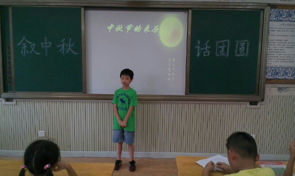 "明月几时有,把酒问青天。"二年级组以班为单位举行了"叙中秋、话团圆"主题班队会。课前,孩子们积极准备有关中秋的资料。班会课上,小泡泡们积极发言,和同学们一起分享中秋的来历以及有关中秋的小故事。外籍孩子也纷纷介绍自己国家的中秋节日的时间和风俗。在其乐融融的氛围中孩子们了解了节日的渊源以及各地在中秋节里各种各样的风俗习惯。