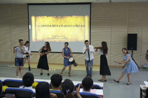 活动在激情的舞蹈中开始。由方堪、蒋征、张盼三位老师为大家带来的舞蹈《小苹果》high翻全场,在三位老师表演过程中,全场老师尖叫声呐喊声不绝于耳,宽敞的阶梯教室瞬间变得活力四射,热闹非凡。