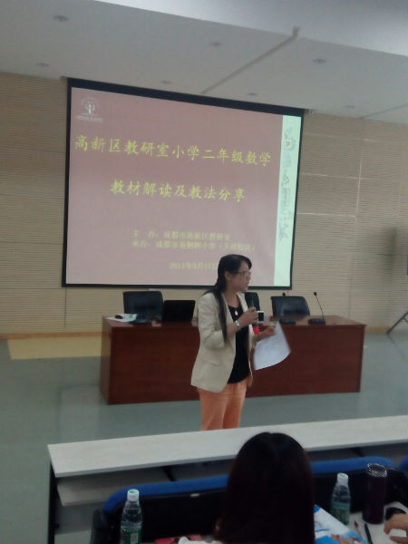 2014年9月17日,高新区二年级数学教材解读在我校多媒体教室,全区二年级数学教师到我校参加培训,活动由区教研员游琼英老师主持。